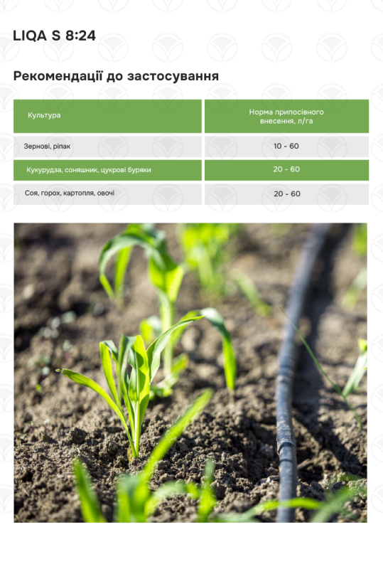 Можливість застосування з пестицидами та мікроелементами.